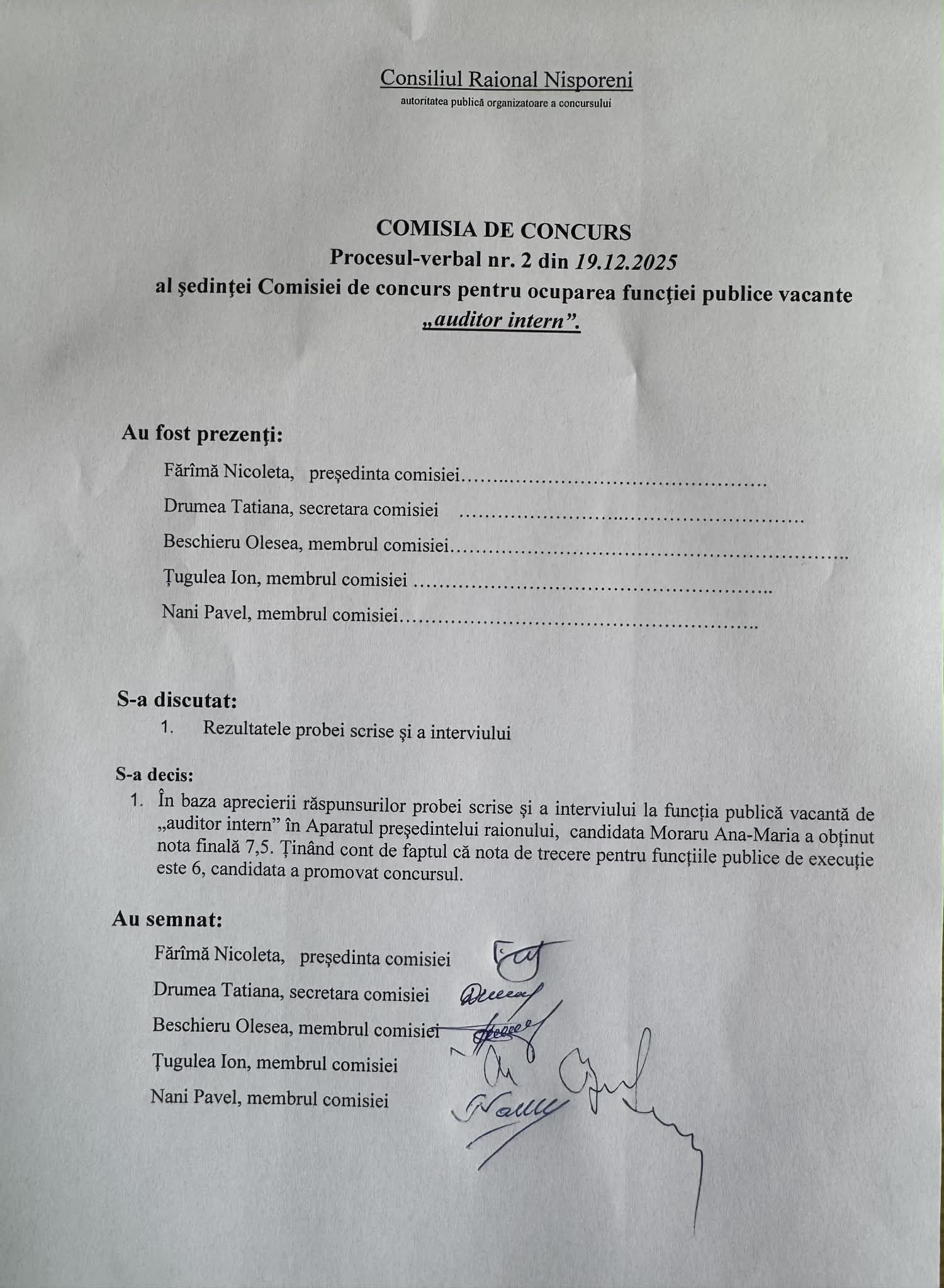 Achiziții publice Proiecte investiționale Funcții vacante Regulamente Declarația de răspundere managerială Comisia pentru Situații Excepționale a raionului Nisporeni Comisia raională extraordinară de sănătate publică